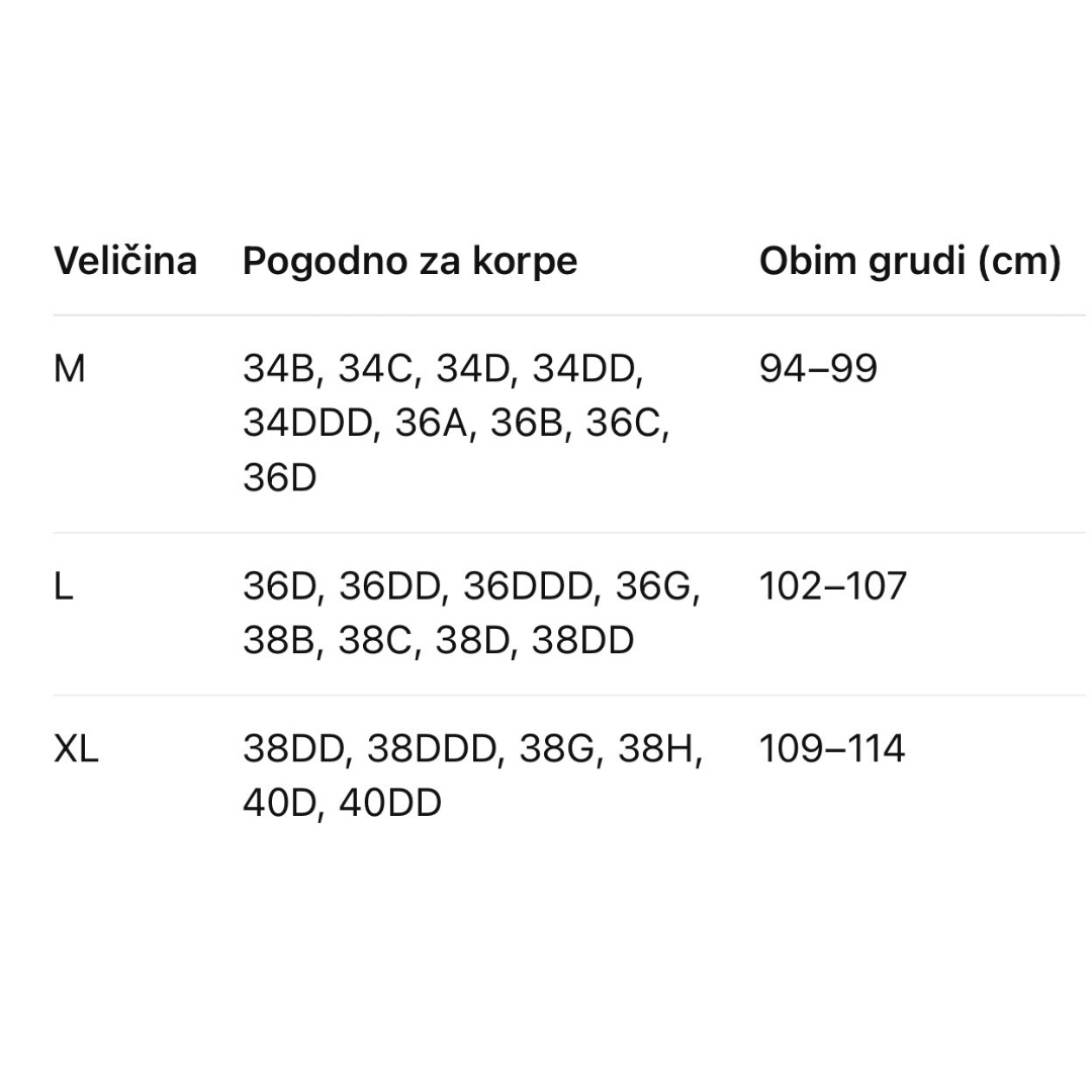 Traka ispod grudi – daje čvrstu podršku i udobno prijanja uz telo.